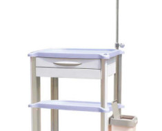 ABS body, mental ball bearing rail, E-aluminum columns, F-plastic-steel columns, IV pole, dust basket, utility container, file bag, defibrillator shelf, CPR board (optional), concave top covered with transparent soft plastic glass, centralized lock, 1 small and 1 big drawer and door, inner with partitions can be well organized, drawer repositioned easily, luxurious noiseless casters.