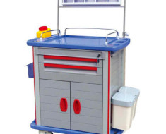 ABS body, metal ball bearing rail, A-aluminum columns, B-plastic-steel columns, needle disposal holder (optional), dust basket, utility container, file bag, IV pole, sliding side shelf, stainless steel guard rail, concave top covered with transparent soft plastic glass, centralized lock, 2 small and 3 big drawer, inner with partitions can be well organized, drawer repositioned easily, luxurious noiseless casters.