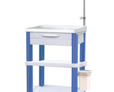 ABS body, metal ball bearing rail, A-aluminum columns, B-plastic-steel columns, dust basket, utility container, file bag, IV pole, concave top covered with transparent soft plastic glass, centralized lock, 2 small and 3 big drawer, inner with partitions can be well organized, luxurious noiseless casters.