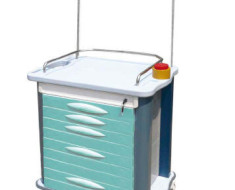ABS body, metal ball bearing rail, C-aluminum columns, plastic-steel columns, dust basket, concave top covered with transparent soft plastic glass, IV pole, 1 big ABS drawer each inner with partitions can be well organized, drawer repositioned easily, luxurious noiseless casters.