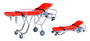 When bent forward, the back of the stretcher is supported by fixed pneumatic springs with strapless controlling up to 60 degrees angle. Equipped with front and back fixation support design, the stretcher can be locked in place into the ambulance at a desired position.