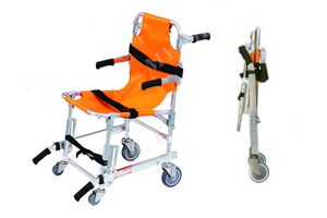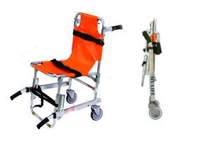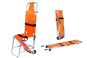 wheelchair type stretcher, made of high quality aluminum alloy, is mainly used in areas with difficult traffic or entry such as narrow halls, gateways, cloisters or stairs of several turnings.